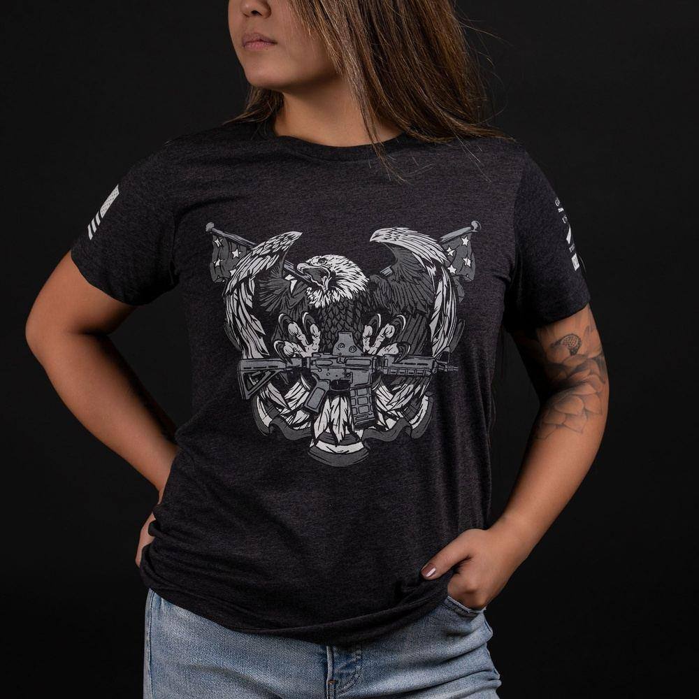 Every month, Club Grunt Style designs a shirt that is just one step more patriotic than the last. What's more Patriotic than an eagle, guns, and the Stars and Stripes? Seriously, this shirt is everything America stands for in one design, every Patriot should own this shirt. Shop this exclusive Club Grunt Style December Graphic Now!