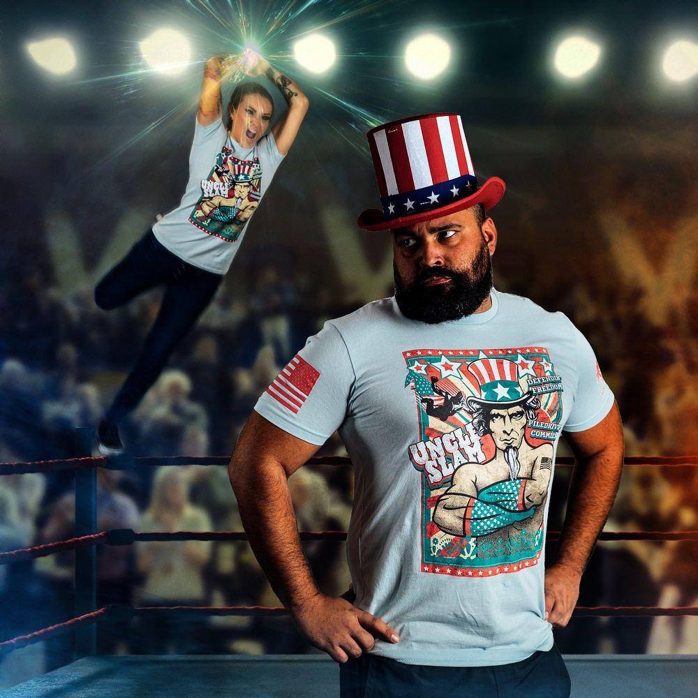 Uncle Slam is here to defend your freedom and piledrive some commies! Just like any well-respecting American should!! Look cool and stylish in this members-only January 2022 graphic t-shirt, and order yours today!
