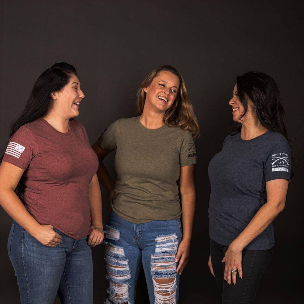 Our Club Grunt Style Women's Basic Heather Navy Tees are crafted with the following details: