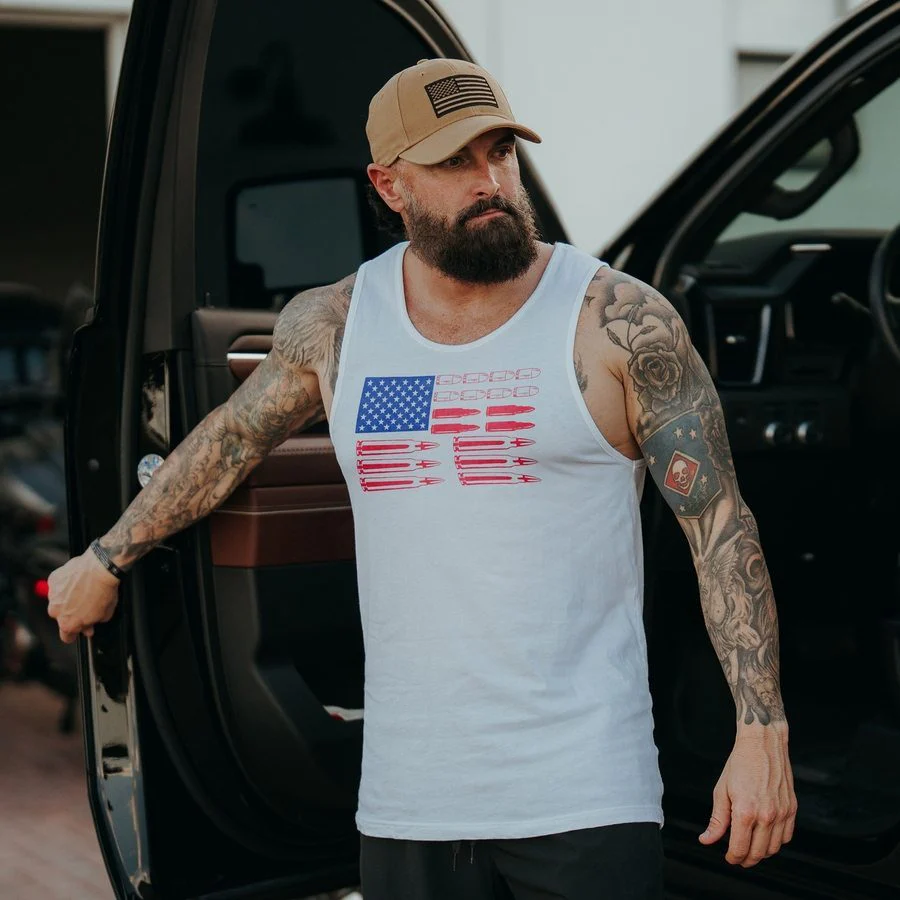 Our Ammo Flag Men's Tanks are crafted with the following details: